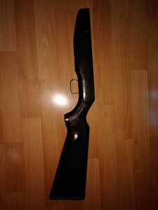 Holzschaft eines älteren Luftgewehrs aus schwerem Holz ohne Beschädigungen gemäß Fotos. Länge 630mm, Aussparung für System 265 x 29mm. Keine Rücknahme und/oder Garantie.
