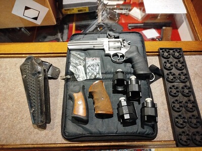 6 Speedloader und Halter. Beides unbenutzt. Zudem Nill Griffschalen, die original Griffschalen, ein Ladebrett,OVP und einen Ruger Patch. Äußert präzise, vor 3 Wochen habe ich Freihand 25m 8*10 2*9 geschossen. Bei Interesse, Fragen oder Preisvorschlägen gerne melden. Auch via WhatsApp. 017643406859 Ein Versand ist natürlich möglich