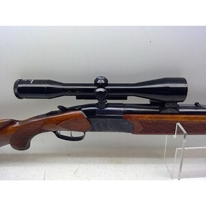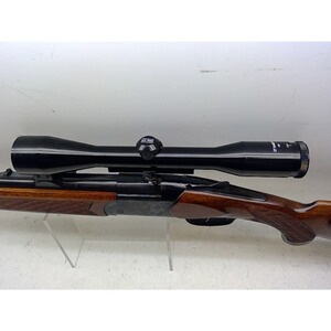 offene Visierung, Rückstecher, Einstecklauf .222, Sicherung auf Kolbenhals, Holzschaft mit Backe, Riemenbügel,