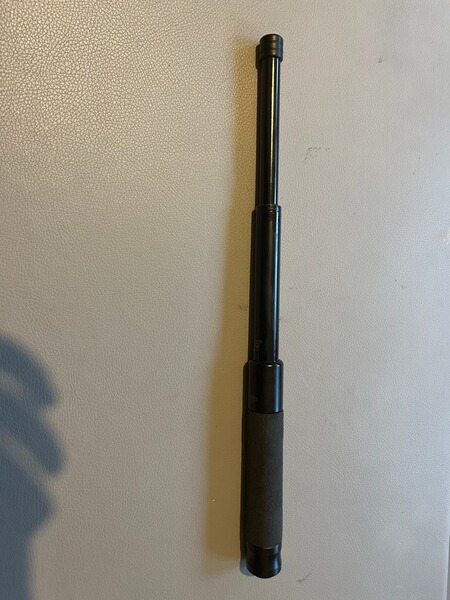 Schlagstock von Asp aus gehärtetem stahl gesamtlänge 52 cm.Entriegelung oer knopfdruck kein schlagen auf den boden nötig oder sinnvoll. Modell talon d50. Der stock kann an der spitze unauffällig aufgezogen werden. Sammlungsauflösung biete noch andere stöcke an kurze und aus alu.
