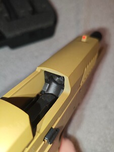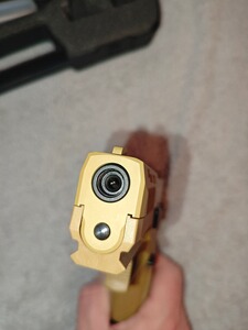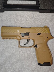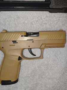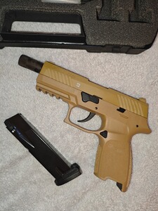 Hallo , ich verkaufe hier meine Sig Sauer P320 Dark Earth (RAL 8000) Schreckschuss Pistole im Kaliber 9mm P.K (PTB 1038).