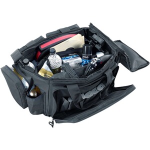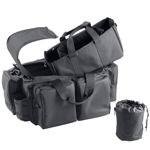 Gefertigt aus reißfestem Nylon, gewährleistet das Modell eine lange Haltbarkeit. Zwei Reißverschlüsse mit großen Schlaufen erleichtern das Öffnen und Schließen des Hauptfachs. Ein separater Hülsenbeutel kann mit einem Karabinerhaken am Gürtel oder Koppel angebracht werden. Die schwarze Farbgebung verleiht dem Modell ein schlichtes und professionelles Erscheinungsbild. Mit einem Gewicht von 3400 Gramm bietet es Stabilität und Robustheit.