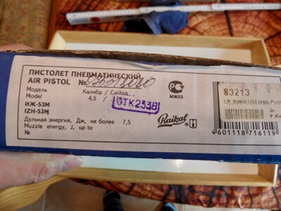 Nr. 6 - Baikal LP, Made in Russia, Nr. 075318080, Bezeichnung Typ HW 53 M, ohne F im Fünfeck, ab 18 Jahre frei, Kunststoffgriff, Druck, Gewicht ca. 1.112 g, Länge ca. 40,5 cm, mit originaler Verpackung.