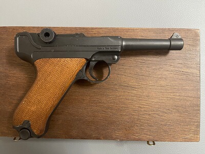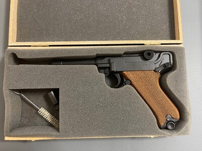 Detailgetreuer Nachbau der berühmten P08, hier als Schreckschuss Pistole im Kaliber 8 mm.