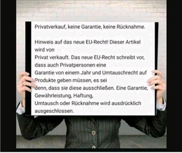 Privatverkauf keine Gewährleistung und keine Rücknahme.