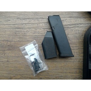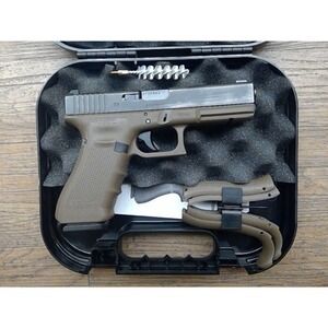 Pistole Glock 17 Gen.4 FDE, starres nachleuchtendes Stahlvisier, überarbeitetet Abzug (org.Teile alle vorhanden) org. Koffer, Ersatzmagazin, Ladehilfe, verschiedene Griffrücken, Fangriemenöse