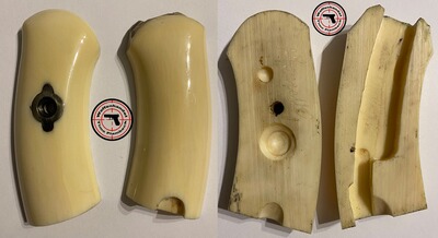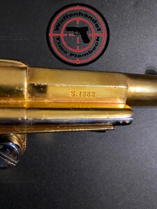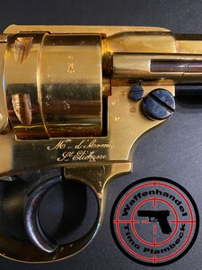 Variante: vergoldeter Revolver (ursprünglich blanke, bzw. grau gebeizte Waffe für die Armee)