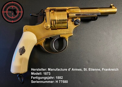 Dieser Revolver wurde bei der französischen Armee 1873 eingeführt und blieb neben dem Revolver Mod. 1892 und späteren Pistolenmodellen bis zum II. WK im Einsatz.