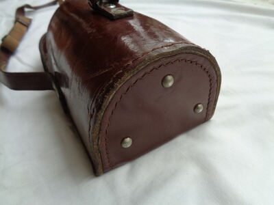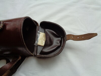 Die dazugehörige Transporttasche ist aus dickem Rindsleder in bester Sattlermanier gefertigt und verfügt über einen verstellbaren Schulterriemen und diverse Innenunterteilungen bzw. Fächer.