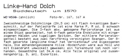 MUSEALE HISTORISCHE BLANKWAFFE aus Verlass. / Nachlass 2-167 LINK-HAND-DOLCH um 1570 mit Expertise