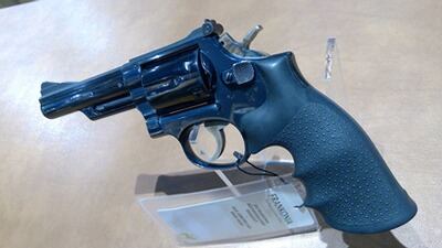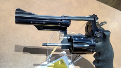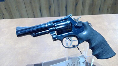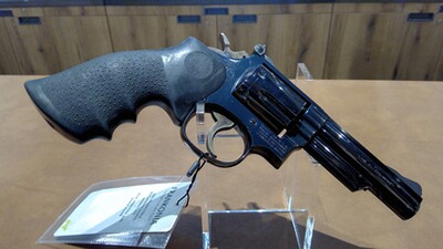 Revolver Smith & Wesson 19-4 im Kaliber .357Mag gebraucht 6- Schuss Trommel, 10,50cm Lauflänge Guter Zustand. Hogue Monogripp Griffschalen. Beschussjahr 79.