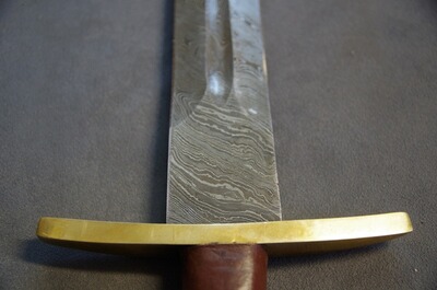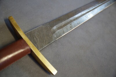 Verkaufe ein schön in Handarbeit gefertigtes Damast Schwert 105 cm im Stil der Templer Ritter ! Schlagkante geschärft , daher auch Materialbedingt eingeölt ! Letztes Exemplar mit kleinem Fehler ! Wie am Bild zu sehen ist die Spitze angestossen daher reduziert !