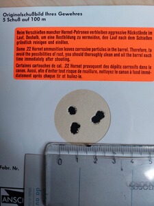Schussbild 4 – 5 Eigenlaborierung mit RWS SG/MJ 45 grs.