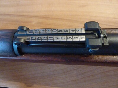magazin, von oben bestückbar, 60 cm Lauflänge, verstellbare Visierung, Flügelsicherung, der Neubeschuss war 1963. Der Holzschaft ist 5 teilig. Das Gewehr selbst, soweit ersichtlich ist Nummern-