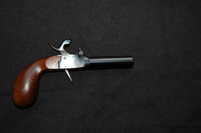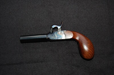Biete diesen wohl momentan im Handel nicht mehr neu erhältlichen Liegie Derringer von Pedersoli in .44.Toll gemaserter Griff,makellos.Stramme Hauptfeder mit angenehmer Abzugcharateristik-wie so oft bei diesem Modell- ohne Laderast.Aus technischer Sicht ist sie sowieso sinnlos.Tolle bläuliche Bunthärtung des Rahmens.Bis auf den auf dem Bild zu sehenden feinen Kratzer makellose Brünierung des Laufes.Wohl ungeschossen.Neumann Vertriebsstempel.Natürlich staatlich beschossen.