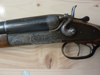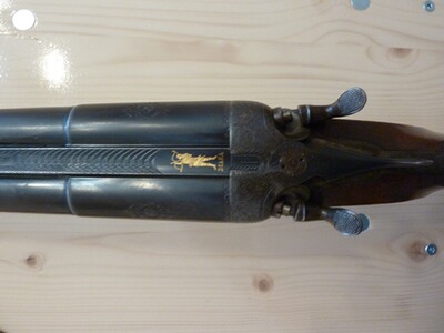 und unter seinem Namen verkaufte. Die Waffe dürfte lt. Beschußamt Lüttich um 1924 hergestellt worden sein. Auf dem linken Lauf steht: ANC.ETABL. PIEPER (Anciens Etablissements Pieper).