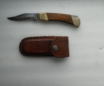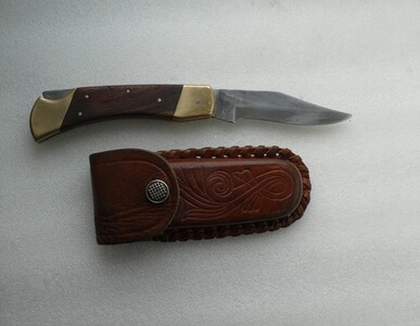 Schönes und bewährtes Design. Voll funktionsfähig. Klapp- und arretierbare Klinge. Zusammengeklappt 12,5 cm lang. Nachhaltig scharf und stabil und sehr handlich. Schon sehr viel Wild gestreift, aufgebrochen usw. Vom Kitz bis zum 160 kg Keiler. Rostfrei, Viel Messing und Echt Hartholzgriffe. Lederscheide mit Gürtelhalter.