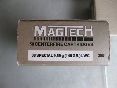 Hier biete ich 100 Patronen also 2 Pack a 50 Stück Magtech 38 Special LWC, 148 gr. an.