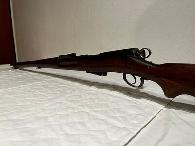 Zum Verkauf steht eine gebrauchte Schweizer Armeewaffe. Die Schmidt-Rubin ist ein schweizer Repetiergewehr mit Geradzugverschluss, das Ende des 19. und Anfang des 20. Jahrhunderts von der Schweizer Armee verwendet wurde. Es verschießt die 7,5-mm-Schweizer Patrone, ist bekannt für hohe Präzision, robuste Bauweise und schnelles Repetieren.