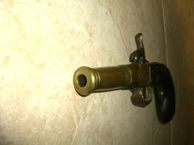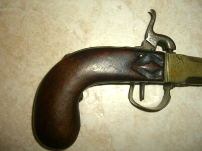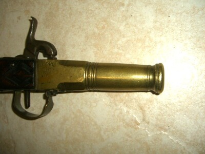 schöne Percussionspistole - Messing und Holz - Innenlaufdurchmesser 9,4 mm - Cal. 12 mm ??