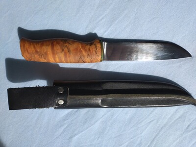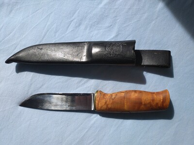 Das Messer wird mit einer klassischen skandinavischen Köcherscheide aus Leder geliefert.