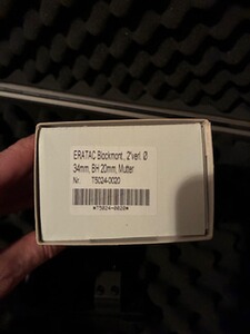 Die Eratac ERATAC Blockmontage ist eine neue, 2 Zoll verlagerte Halterung mit einem Ringdurchmesser von 34mm. Sie wird aufgrund einer Projektaufgabe zum Verkauf angeboten. Es liegt eine Rechnungskopie für die Original-Herstellergarantie bei.