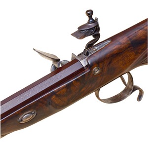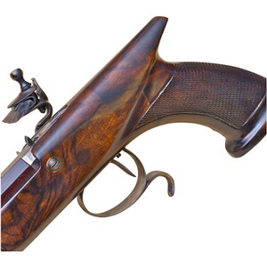 Eine wunderschöne Reproduktion einer Pistole der berühmten Londoner Büchsenmacher Joseph Egg und Henry Tatham. Die faszinierende Form des Griffs wird durch die recht deutliche, seitliche Linie hervorgehoben. Der ergonomische Griff ermöglicht eine wiederholgenaue Platzierung der Hand und optimale Neigung des Handgelenks. Ausgestattet ist die Pistole mit einer einstellbaren Kimme, Stecherabzug, gebräuntem Lauf in PMG-Qualität, Nussbaumschaft und buntgehärteten Metallteilen.