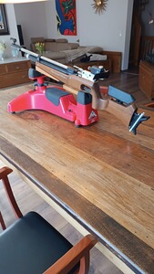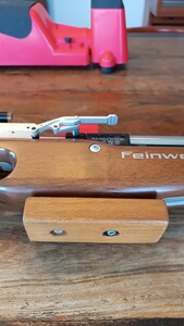 Die klassischen Holzschäfte von Feinwerkbau waren auf die alte Sportordnung ausgelegt, die 90 mm Abstand zwischen Laufachse und Unterkante des Vorderschaftes zuließen. Ich habe mir vom Tischler einen Klotz aus Robinie zuschneiden lassen und den Schaft mit Gewindehülsen versehen, damit die 120 mm laut neuer Sportordnung ausgenutzt werden können. Die Erhöhung lässt sich auch wieder abschrauben. Für mich war das der entscheidende Schritt, um genauso gut schießen zu können wie mit der FWB 800 unseres Sohnes mit Aluschaft. Mit der Basic habe ich zweimal die Kreismeisterschaft gewonnen ... aber ehrlicher Weise nur, weil Ü50 die Konkurrenz bei den Freischützen kaum vorhanden ist :-)