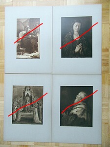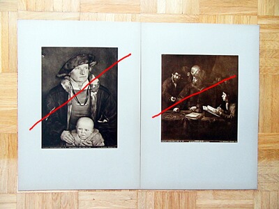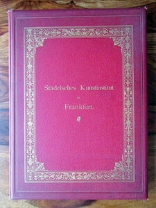 Dieses sehr seltene Werk von 1899 dokumentiert einige Meisterwerke des bekannten Städel Museums in Frankfurt und ist heute wahrscheinlich nur noch in einigen Forschungsbibliotheken zu finden. 22 Bildtafeln / Lichtdrucke des 1858 gegründeten Münchner Bruckmann Verlags. Die Schutzmappe ist in der typischen Jugendstilornamentik auf dem Cover sowie im Innenteil gehalten. Einband weist dem Alter entsprechenden Abrieb und kleine Beschädigungen auf. Bildtafeln weisen an den Rändern leichte Verfärbungen auf. Auf dem Bild von Hans Hohlbein sind auf dem Karton Fingerabdrücke zu sehen, der Lichtdruck selbst ist aber unbeschädigt. Die roten Striche auf den Lichtdrucken sind im Original natürlich nicht vorhanden und dienen nur dem Schutz vor Bildersammlern. Keine Garantie auf Vollständigkeit. Auf Wunsch sende ich selbstverständlich weitere Fotos zu.