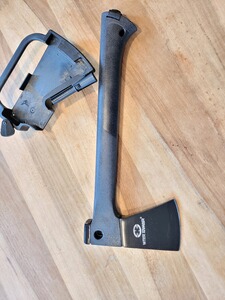 Ein Multifuktions-Outdoorbeil mit schwarz beschichtetem Kopf.