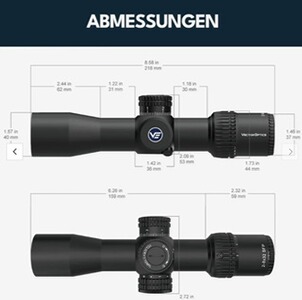 - Verstellung: 1/10MIL, 1cm, 0,1MRAD