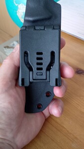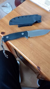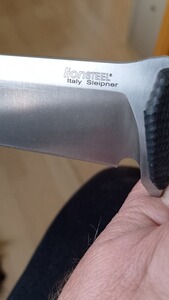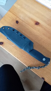 Hallo Jäger und Sammler, Spitzenmesser von Lionsteel Italien, aus Maniago,dem Gegenstück von Solingen.Mit wunderbarer Handgefertigter Kydex-Scheide, verstellbar.Werden genau auf das jeweilige Messermodell zugearbeitet.Original Scheide aus Cordura auch vorhanden.Messer aus dem hervorragenden Sleipnerstahl, Schweden.Stahl ist ähnlich D 2, aber viel zäher,Schnitthaltiger,bricht nicht aus und ist sehr flexibel.Gilt als nahezu Rostfrei,sollte aber etwas gepflegt werden.Ein tröpfchen Öl nach Gebrauch kann nie schaden.Länge 11,8 cm,Klingenrücken 0,45 cm Höhe ca 3,3 cm.Supergriff aus schwarzem G 10, ist verfeinerte Glasfaser, verschraubt und resistent gegen Nässe und Öl.Für sämtliche Arbeit am erlegten Stück sowie für Holz etc hervorragend geeignet.Neupreis ca 190,- €.Selbstabholer bzw Versand möglich.