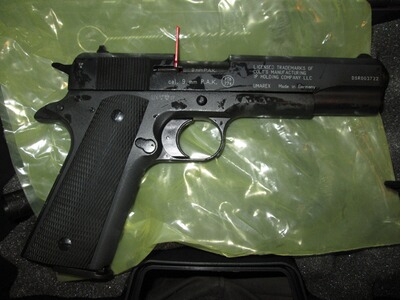 Der Umarex Colt Government 1911 A1 BLK ist ein detailgetreuer Nachbau der bekannten Pistole, die in zwei Weltkriegen als Standardpistole der GI's diente. Dieses Modell besitzt eine PTB-Zulassung und ist mit den originalen Herstellerbrandings versehen.