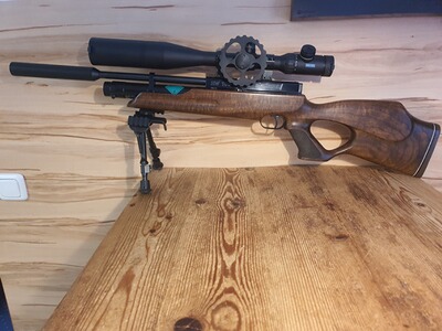 Ausführung wie HW 100 T, jedoch als Kurz-Version. Besonders handlich und kompakt, kurzer Nussbaumschaft mit Backe, elegant und jagdlich, geöltes Nussbaumholz, punzierter Pistolengriff, mit seitlicher Griffrille im Vorderschaft, für Rechts- und Linkshänder.