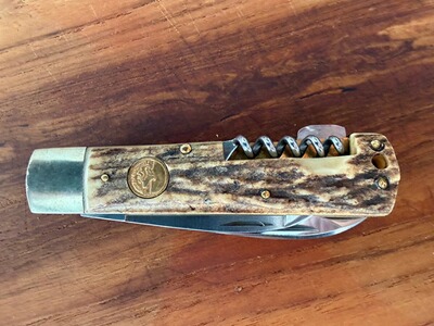 Griff aus Hirschhorn, Material der Platinen Messing, Material der Backen Neusilber