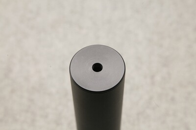Innenbalance aus Edelstahl, Dämpferkörper aus legiertem Aluminium. Die schwarz mattierte Oberflächenbeschichtung verhindert Reflektionen. Die Austrittsöffnung des Schalldämpfers ist ca. 1 mm größer als der Durchmesser des Geschosses. Der Schalldämpfer ist gekapselt verbaut, somit kann er nicht für eine Reinigung zerlegt werden.