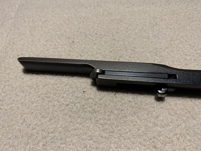 Im vorderen Bereich ist er schon leicht angerostet. Da er aber nicht verbogen ist, bieter er zumindest eine gute Basis zum neuen brünieren.