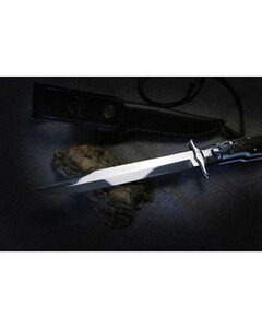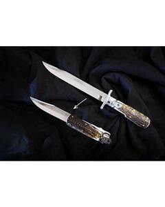 Das neue PUMA Verlängerungsmesser besitzt eine ausklappbare, 19 cm lange Klinge aus rostfreiem 440C Stahl (57–58 HRC). Im eingeklappten Zustand steht die Klinge deutlich über das Griffende hinaus und lässt sich somit auch für feinere Arbeiten nutzen. Das bewegliche Parierelement ("Swing Guard") liegt dabei flach am Griff an und schwenkt beim Ausklappen der Klinge vor den Griff um die messerführende Hand - z.B. beim Abfangen von Wild - zuverlässig zu schützen. Zusätzlich verfügt das „Verlängerungsmesser“ über einen umlegbaren Hebel, der als Sicherung und Entriegelung der mit einer Retro-Beschriftung versehenen Klinge dient. Ausgesuchte Hirschhornschalen und eine passgenaue Ledergürtelscheide runden dieses formschöne und in hochwertiger Handarbeit gefertigte Solinger Produkt vollends ab.