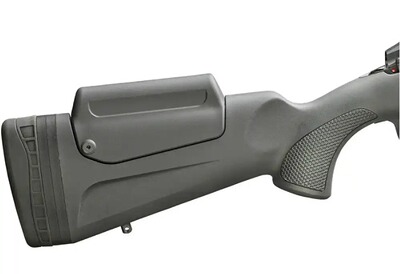 Die Büchse kommt mit stabilem und robustem Polymerschaft mit angenehm dämpfender Gummischaftkappe. Der Hinterschaft mit austauschbarem Schaftrücken und Schaftverlängerung (als Spacer Set im Lieferumfang enthalten) fördert einen guten, sicheren Anschlag. Eine führige Büchse, auch in engen Kanzeln oder zur Bewegungsjagd geeignet.