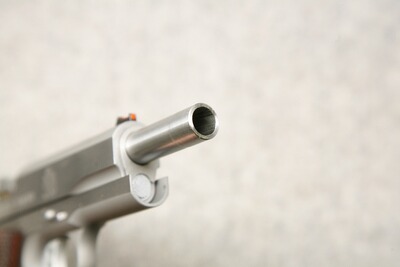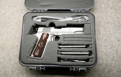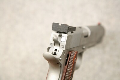 Kaliber .45 ACP (.45 Auto). Lauflänge 5" / 127 mm, Ganzstahlwaffe aus Stainless Steel. Fein verstellbare Mikrometer-Visierung, Leuchtkorn. Videcki-Matchabzug mit Triggerstop. Verlängerter Sicherungshebel links. Langes Beavertail verbessert die Handlage und schütz vor dem bösen Hammerbiss. Magazinkapazität 7 Patronen. Ersatzmagazin, Original Koffer.