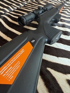 Die Tikka T3x Modelle vereinen Präzision, Robustheit und Funktionalität wie nur wenige andere Repetierbüchsen – insbesondere in dieser Preisklasse! Die Büchse verriegelt wie alle T3-Modelle durch zwei großflächige Verriegelungswarzen in der Systemhülse. Der kaltgehämmerte, freischwingende Lauf ist in den Standardkalibern kompakte 51 lang. Die 2- Stellungsschiebesicherung hat sich als absolut zuverlässig erwiesen. An der Kammer ist ein langer, weit vom Schaft abstehender Kammerstängel aus rostträgem Stahl angebracht. Er mündet in eine birnenförmige Kugel und ist auch mit Handschuhen sehr gut zu greifen. Die Kugel wurde innen zur Gewichtsersparnis ausgehöhlt. Zusäsäzlich kommmt die Waffe hier mit einer Mündungsbremse.
