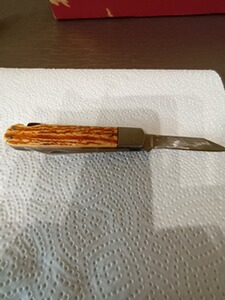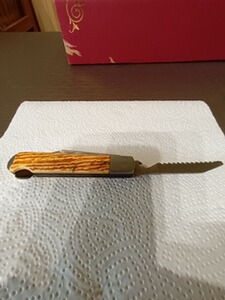 Verkaufe ein gebrauchtes Jagdmesser mit Gebrauspuren mit kleinem abplatzer an der einen griff schale. Das Jagdmesser wurde von der damaligen Firma GML Leegebruch aus DDR Zeiten hergestellt. Es ist sehr scharf. Die Klingenlänge ist 8,0 cm und Säge 8,5 cm Geschlossen 12 cm. Es ist noch sehr Scharf.