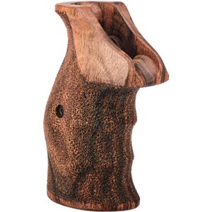 Der Griff ist speziell auf Rechtshandschützen zugeschnitten und verfügt über eine Daumenauflage, die eine komfortable und sichere Handhabung fördert. Die Fingerrillen unterstützen eine natürliche Griffhaltung, die zu einer verbesserten Kontrolle über den Revolver beiträgt. Diese Gestaltungselemente machen den Griff zu einer geeigneten Wahl für anspruchsvolle Schießübungen und Wettkämpfe.