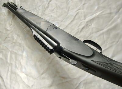 Ausgestattet mit einer Picatinny-Montageschiene. So kann beispielsweise ohne großen Aufwand ein Leuchtpunktvisier angebracht werden. Ferner verfügt die Flinte auch über eine Picatinny-Schiene am unteren Lauf, an der weiteres Zubehör montiert werden kann.
