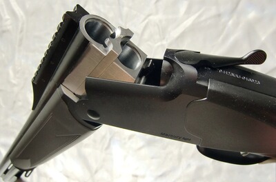 Zudem verfügt die Bockdoppelflinte über einen Stahlschrotbeschuss sowie über ein geringes Gewicht von ca. 2,8 kg. Das System ist mit einem Blitzschloss versehen und die Sicherung ist mit einem Schieber auf dem Kolbenhals angebracht. Darüber hinaus erlaubt der Einabzug mit Umschaltung ein schnelles Reagieren auf sich ändernde Situationen.