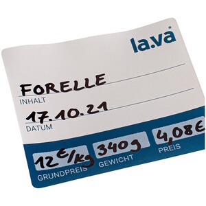 Stabile und gut haftende Klebeetiketten zur einfachen und sauberen Beschriftung von Vakuumbeutel und Vakuumrollen. Pro Rolle = 100 Stück (Felder: Inhalt, Datum und Gewicht). Etikettengröße (LxB) 7x6 cm.