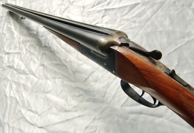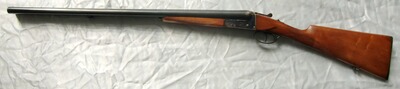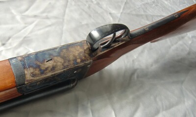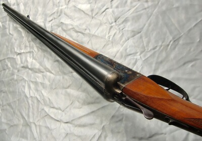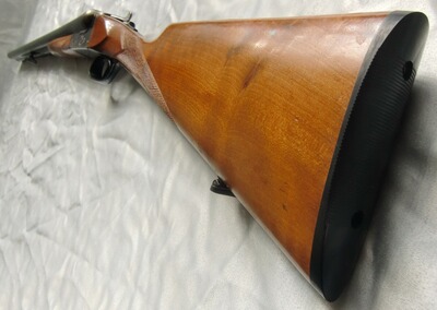 Eine schmucke und gut verarbeitete, spanische Doppelflinte mit buntgehärteter Stahlbasküle, doppelter Laufhakenverriegelung und Doppelabzug. Hier ist kein, beim nachladen störender, Greenerriegel im Weg. Ohne Ejektoren, mit Hülsenausziehern, Perlkorn, incl. Riemenbügeln. Dezente, florale Gravur auf der Basküle, Finish: brüniert mit buntgehärteter Basküle.