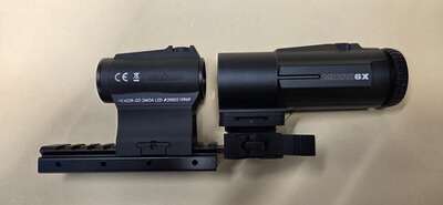 Biete hier ein Holosun HE 403 R - GD Goldpunktvisier (2 Moa Punkt) mit einem Vortex Micro 6x Magnifier mit 6 fächer Vergrößerung an.