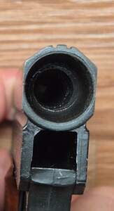 Mit dabei ist auch der Mündungseinsatz, der regelmäßig bei dieser eh nicht soooo oft angebotenen Waffe fehlt. Den Mündungseinsatz habe ich ganz grob (!) entrostet mit dem Dremel. Sieht noch nicht richtig toll aus. Den wieder schön zu bekommen (polieren) geht noch viel besser, und überlasse ich dem Käufer.