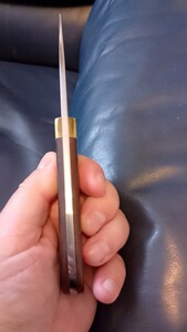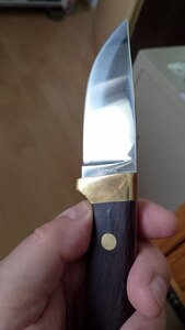 Hallo Messerfans ,Sammler und Jäger.Tolles Messer vom Herrn NIEMIETZ, mit derber fester Lederscheide.Ist schon lange in meinem Besitz und soll nun einen anderen Liebhaber erfreuen.Polierte Klinge 1.4116 deutscher Stahl.Pakkaholz-Griffschalen.Klinge geht voll durch, Vollerl.Klingenlänge 9 cm, breite ca 3,2 cm,stärke ca 4 mm.Unbenutzt, daher wie neu.Habe nur mal an der Scheide etwas modifiziert, ist aber alles in Ordnung.Genietet und fein sauber verarbeitet.Nieten - und Beschläge aus Messing.Selbstabholer bzw Versand möglich.